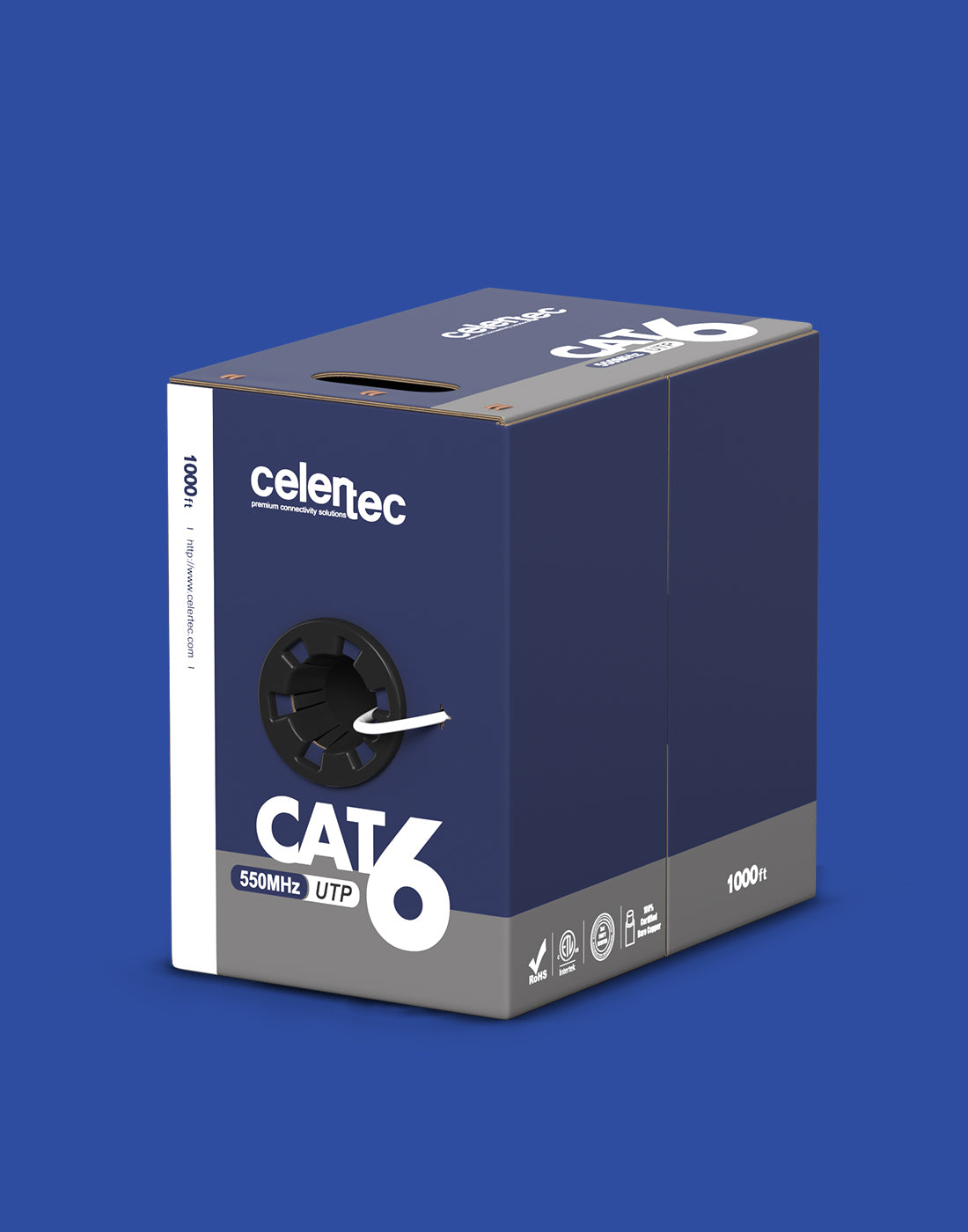 Cat6 Ethernet Cable, U/UTP, 23AWG Solid Bare Copper, CMP, UL Certified - 500ft